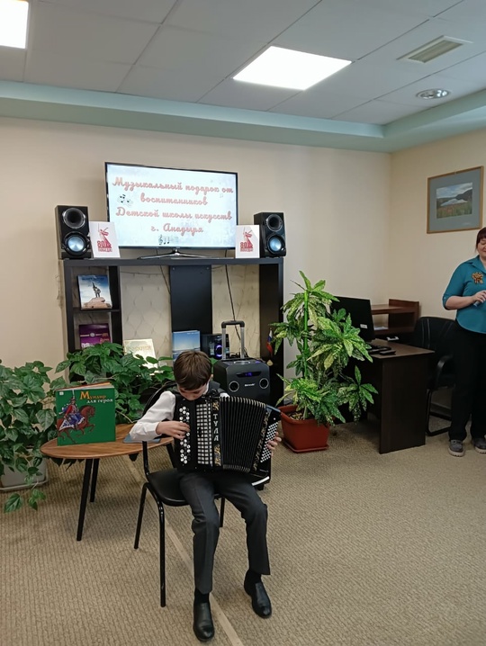 «Не ради славы и наград» концерт обучающихся отделения народных инструментов в Клубе добрых встреч в Публичной библиотеке имени Тана-Богораза. 3 апреля 2025 года в уютной атмосфере «Клуба добрых встреч» прошла концертная программа обучающихся отделения народных инструментов Детской школы искусств городского округа Анадырь. Мероприятие состоялось в рамках проекта «Активное долголетие» и было посвящено теме «Не ради славы и наград» теме, наполненной глубоким смыслом, уважением к подвигам прошлого и трепетным отношением к старшему поколению. Юные исполнители подарили зрителям насыщенную музыкальную программу, в которую вошли произведения, отражающие силу духа, красоту народного искусства и благодарность тем, кто посвятил свою жизнь созиданию, труду и служению Родине. Каждое выступление сопровождалось искренними эмоциями, тёплыми аплодисментами и особенной атмосферой душевного общения. Для гостей мероприятия участников проекта «Активное долголетие» этот концерт стал настоящим праздником, напоминанием о неразрывной связи поколений и значимости поддержки, внимания и заботы.