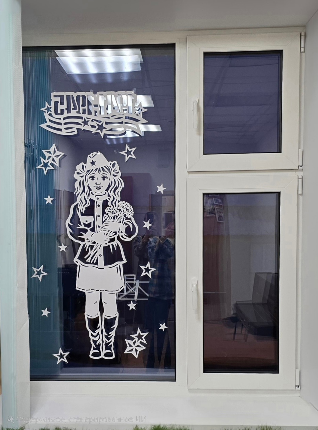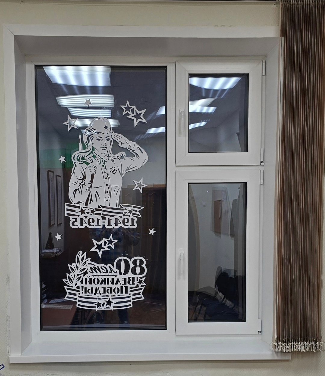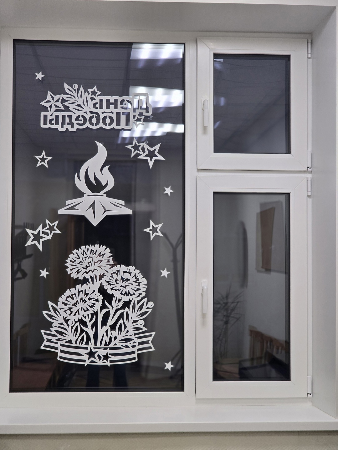 В рамках акции «Окна Победы» преподаватели и учащиеся Детской школы искусств украсили окна школы тематическими силуэтными изображениями, посвящёнными Году Защитника Отечества и 80-летию Победы в Великой Отечественной войне. Эти ажурные композиции стали символом памяти, уважения и благодарности поколению победителей. Для оформления были выбраны знаковые образы военного времени: мужественные фигуры солдат, сцены прощания и встречи, вечный огонь, ордена и медали, символизирующими героизм и самоотверженность защитников Родины. Каждый элемент оформления продуман до мелочей: аккуратные линии, выразительные силуэты и тонкие узоры создают эффект живых картин, перенося зрителя в атмосферу тех героических лет. Благодаря этой инициативе окна Детской школы искусств превратились в символ памяти, объединяя учеников, педагогов и всех, кто видит эти торжественные композиции, в едином стремлении сохранить историческую правду и передать её будущим поколениям.